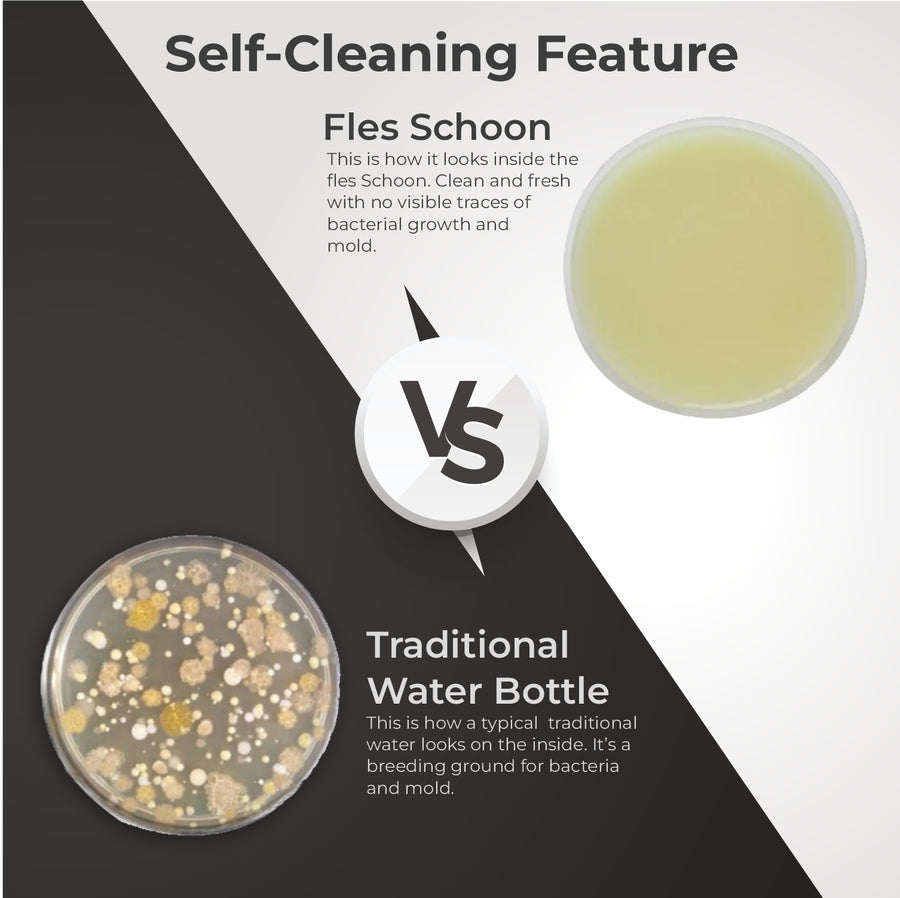 Stay fresh, stay safe. Fles Schoon uses advanced UV-C sterilization to eliminate 99.9% of germs and odors, keeping your water clean and bottle odor-free—all day long. Made from premium stainless steel, it’s vacuum-insulated, leak-proof, and stylish enough for gym, travel, or your desk.