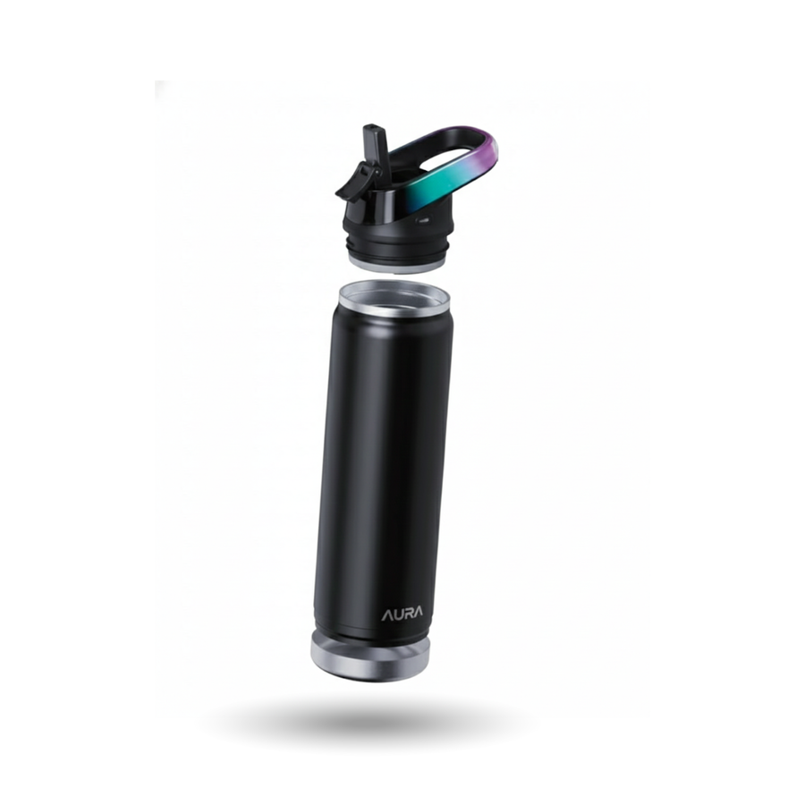 Stay hydrated with intelligence. The AURA Smart Water Bottle combines sleek design with cutting-edge hydration tracking technology. Its soft RGB-illuminated lid provides visual reminders to drink, while the integrated app syncs seamlessly with iOS and Android devices to monitor your daily intake, set personalized hydration goals, and receive actionable wellness insights. Powered by a rechargeable USB-C battery, this smart bottle adapts to your active lifestyle—whether you're at the gym, office, or on the move. Transform how you approach hydration with real-time data and intelligent guidance.